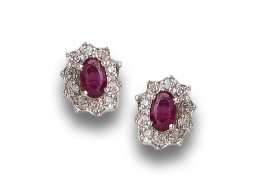 PENDIENTES ROSETONES DE RUBÍES Y DIAMANTES, EN ORO BLANCO