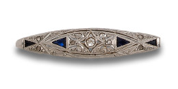 ALFILER ART DECÓ EN ORO Y PLATINO CON DIAMANTES Y ZAFIROS