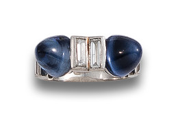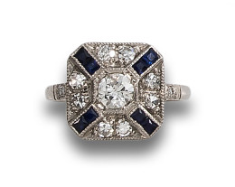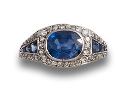 SORTIJA ART DÉCO DE DIAMANTES Y ZAFIRO, EN PLATINO