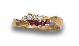 SORTIJA, AÑOS 80, DE DIAMANTES Y RUBÍES, EN ORO AMARILLO