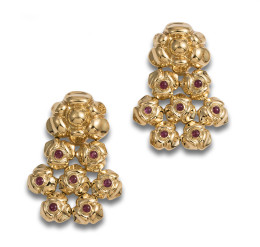 GOLD EARRINGS WITH RUBIES AND DIAMONDS