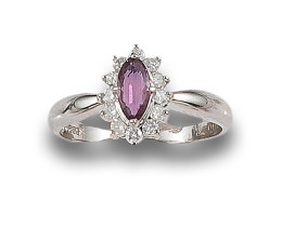 PINK SAPPHIRE ROSETTE RING, DIAMONDS, IN PLATINUM