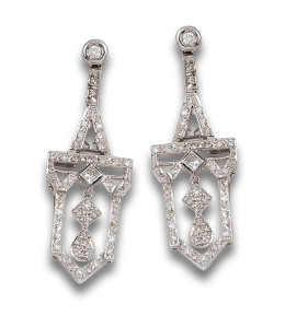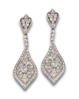 PENDIENTES, ESTILO ART DÉCO DE DIAMANTES, EN ORO BLANCO