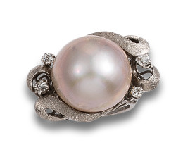 SORTIJA AÑOS 50 EN PLATINO, CON PERLA MABÉ Y DIAMANTES