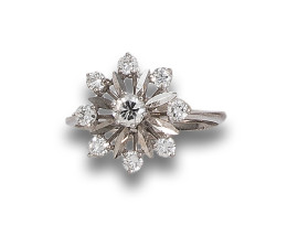 SORTIJA ROSETA DE DIAMANTES, EN ORO BLANCO
