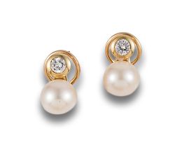 BYPASS EARRINGS IN GOLD WITH PEARLS AND DIAMONDS