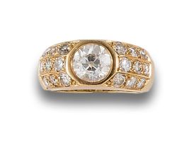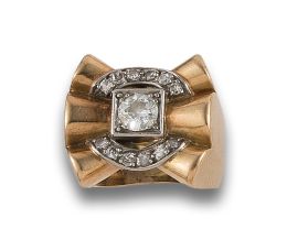 CHEVALIER RING, 1940s, WITH DIAMOND, IN GOLD AND PLATINUM