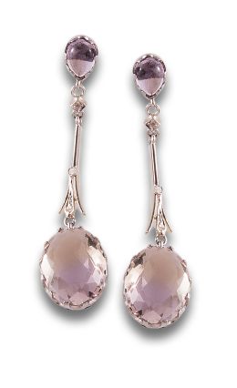 LONG ANTIQUE STYLE AMETRINE EARRINGS IN GOLD AND PLATINUM