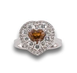 HEART RING WITH COLORLESS DIAMONDS AND FANCUT, IN WHITE GOLD