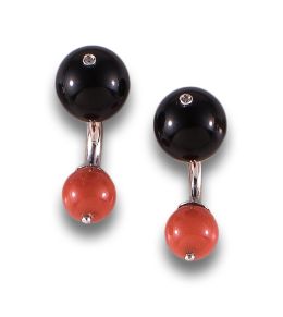 DOUBLE CORAL AND ONYX CUFFLINKS, IN WHITE GOLD
