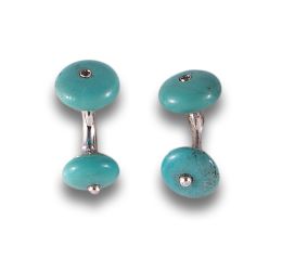 DOUBLE CUFFLINKS IN TURQUOISE AND SAPPHIRE IN WHITE GOLD