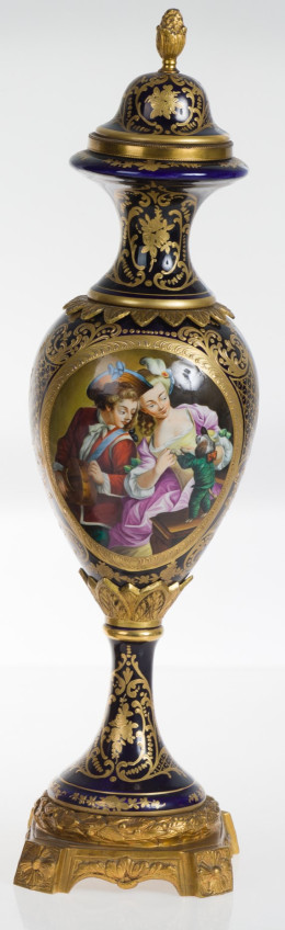 Jarrón de porcelana montado en metal dorado siguiendo los modelos de Sèvres, med.S.XX