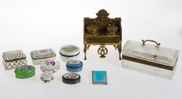 Ocho cajas de porcelana y una de plata con placa de porcelana, diferentes manufacturas, pps.S.XX