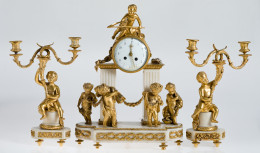 Guarnición de reloj y candelabros estilo Luis XVI, Francia, 1900