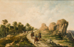 "Paisaje con soldados de caballería e infanteria"