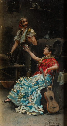 "Bandolero y gitana en la taberna"