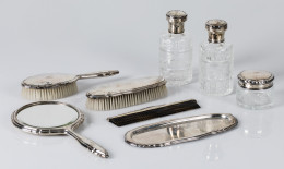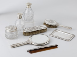 Juego de tocador de plata española ley 916 y cristal tallado, España, med. S. XX