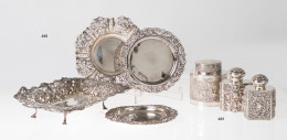 Juego de tocador de plata española y cristal tallado a la rueda, ley 916, S. XX