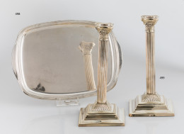 Pareja de candeleros Watson de plata ley 916 y platero Pedro Durán, España, S. XX