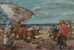 "Bueyes y pescadores en la playa"