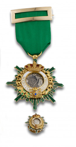 CRUZ Y MINIATURA AL ORDEN DEL MÉRITO AGRARIO EN PLATA Y ESMALTES