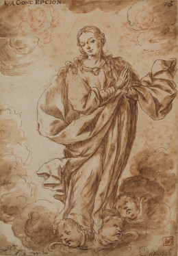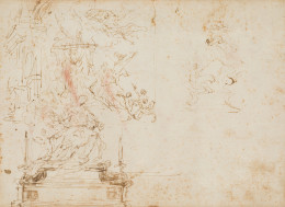 "Apunte con dos ángeles y la aparición de la Virgen del Rosario a santo Domingo"