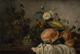 GENNARO GUGLIELMI Naples, Italy (1804 / 1887) "Table still life with flowers and fruits", 1860