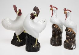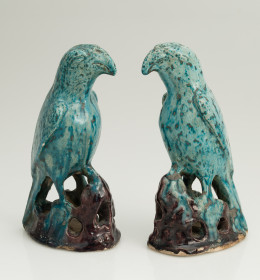 "Birds", pair of blue and brown glazed ceramic figures, possibly China, 20th century