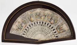 Fan with bone rods and polychrome border with eighteenth-century scenes on a cartouche, mid-20th century
