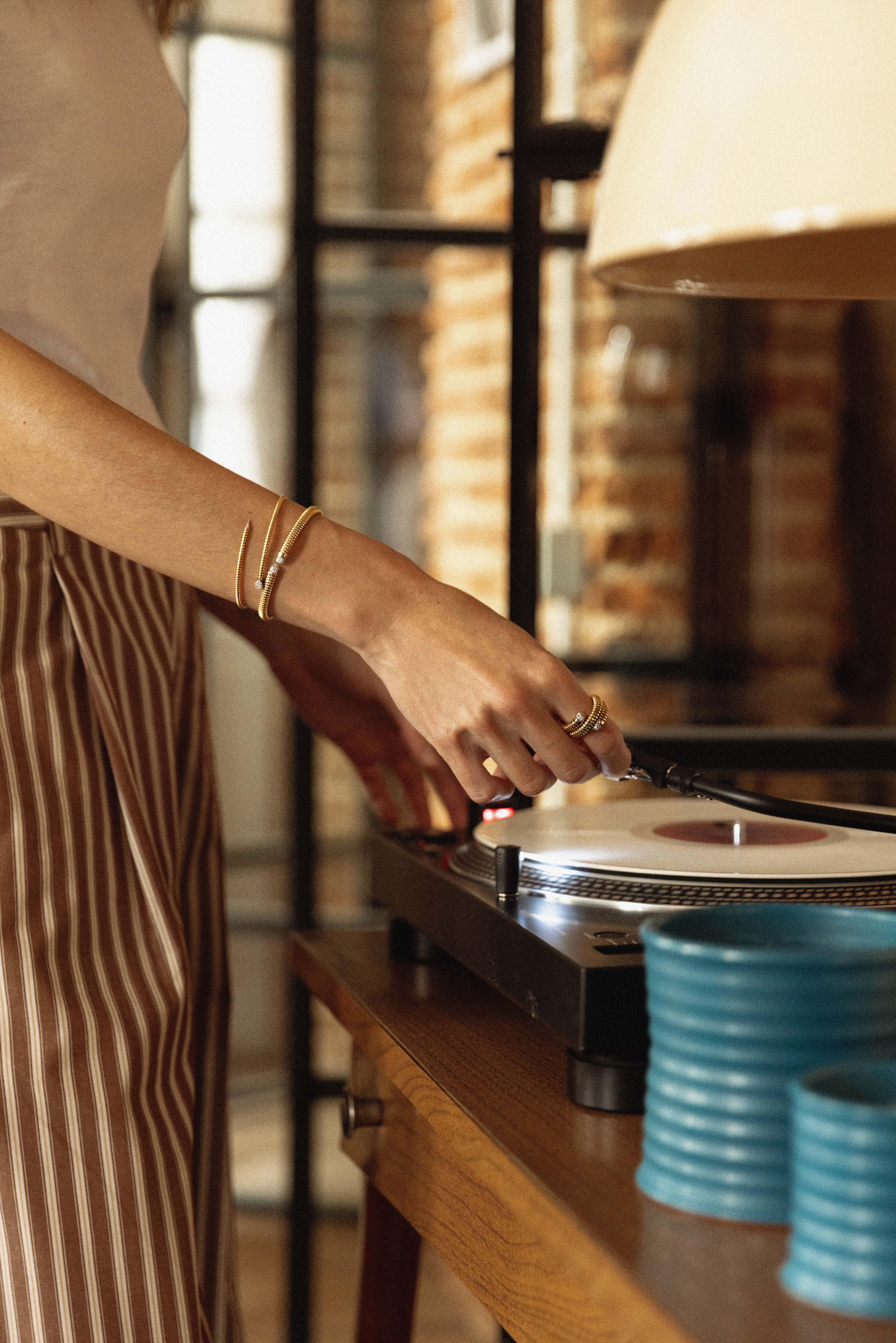 Sortija doble tubogas de oro amarillo de 18 kt. con detalles de oro blanco y diamantes
