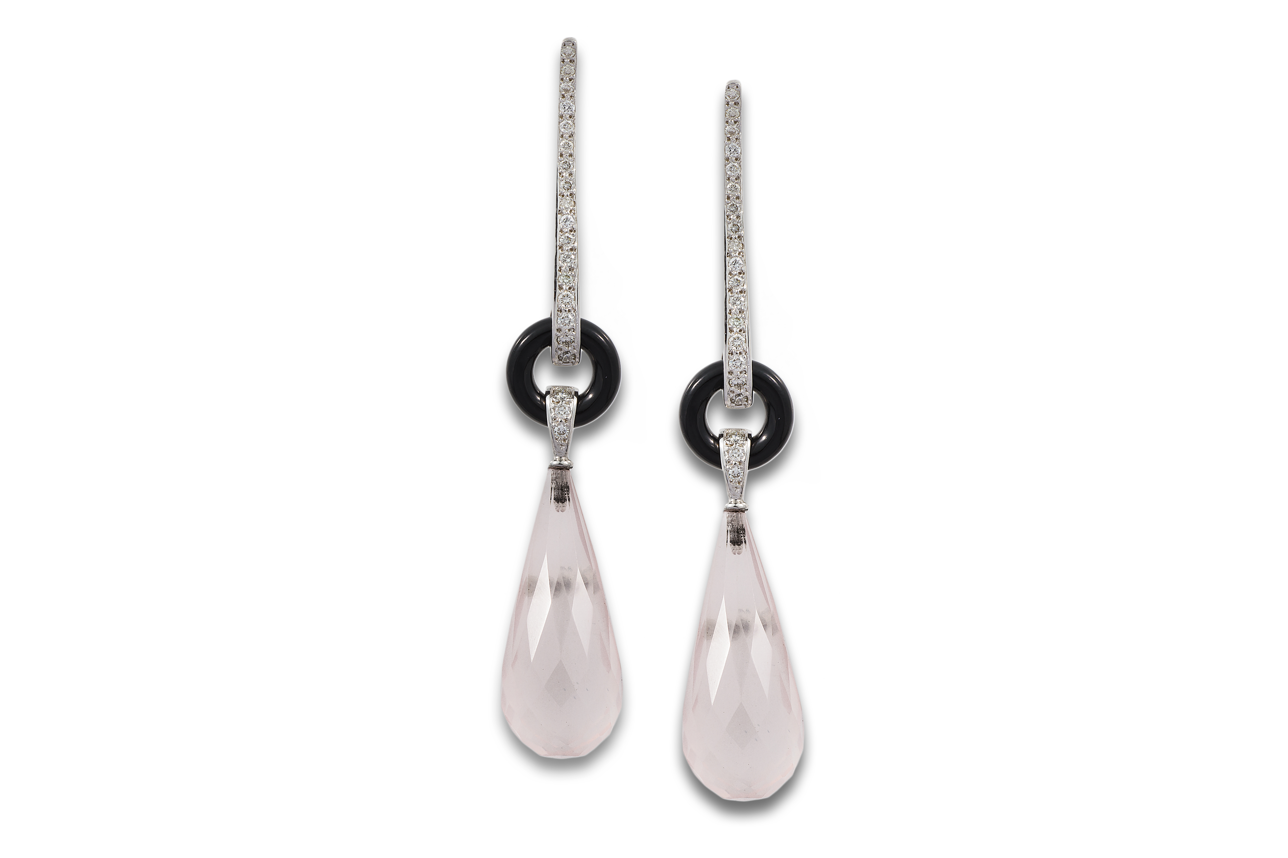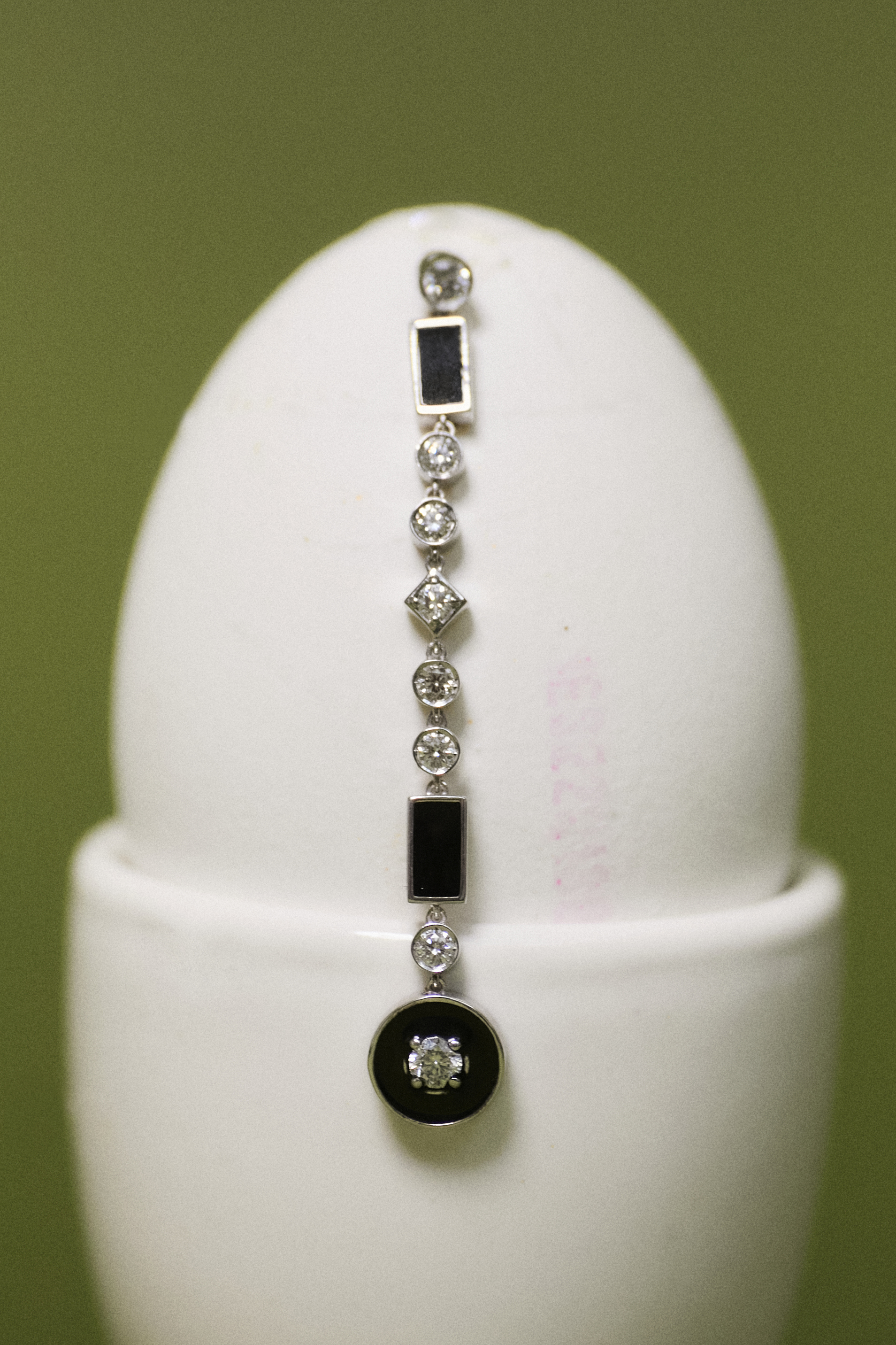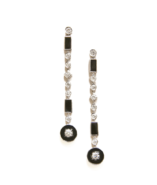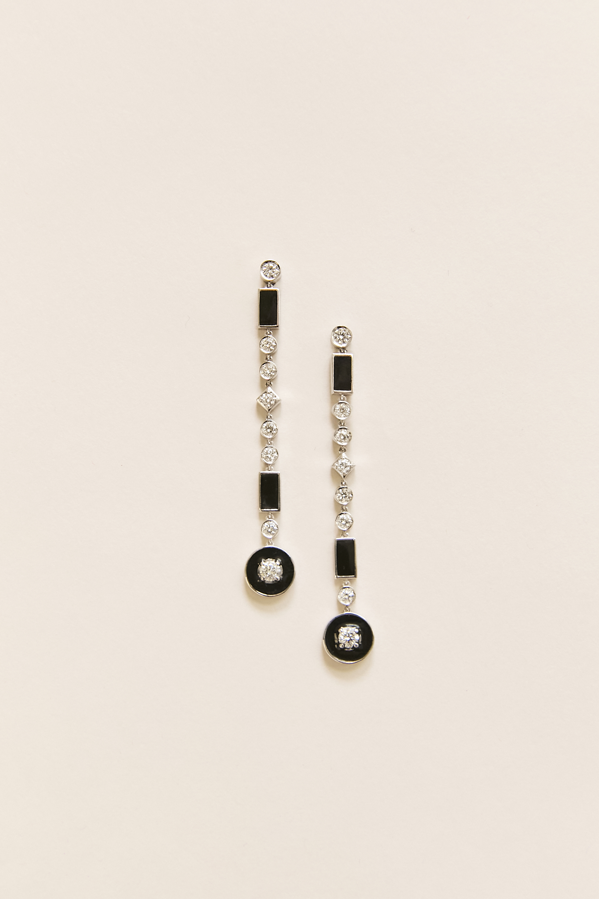 Pendientes Casilda se Casa de oro blanco de 18 kt. con diamantes talla brillante,peso total 1,06ct. y esmalte a fuego en color negro
