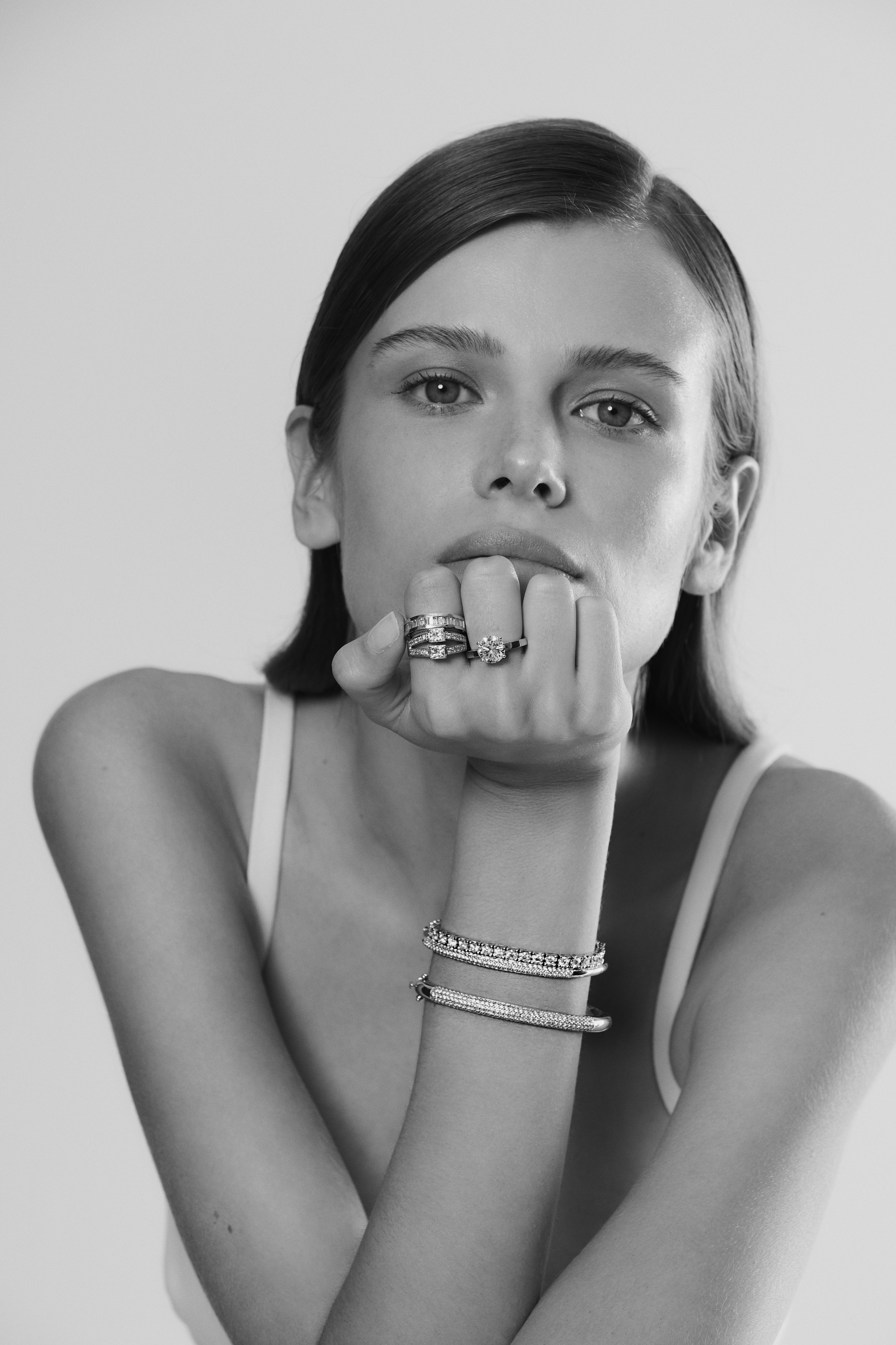 Pulsera riviere de oro blanco de 18 kt. de diamantes talla brillante, peso total 5.55 ct.