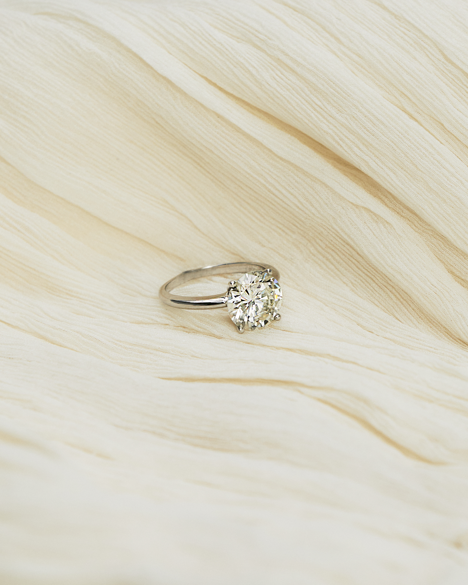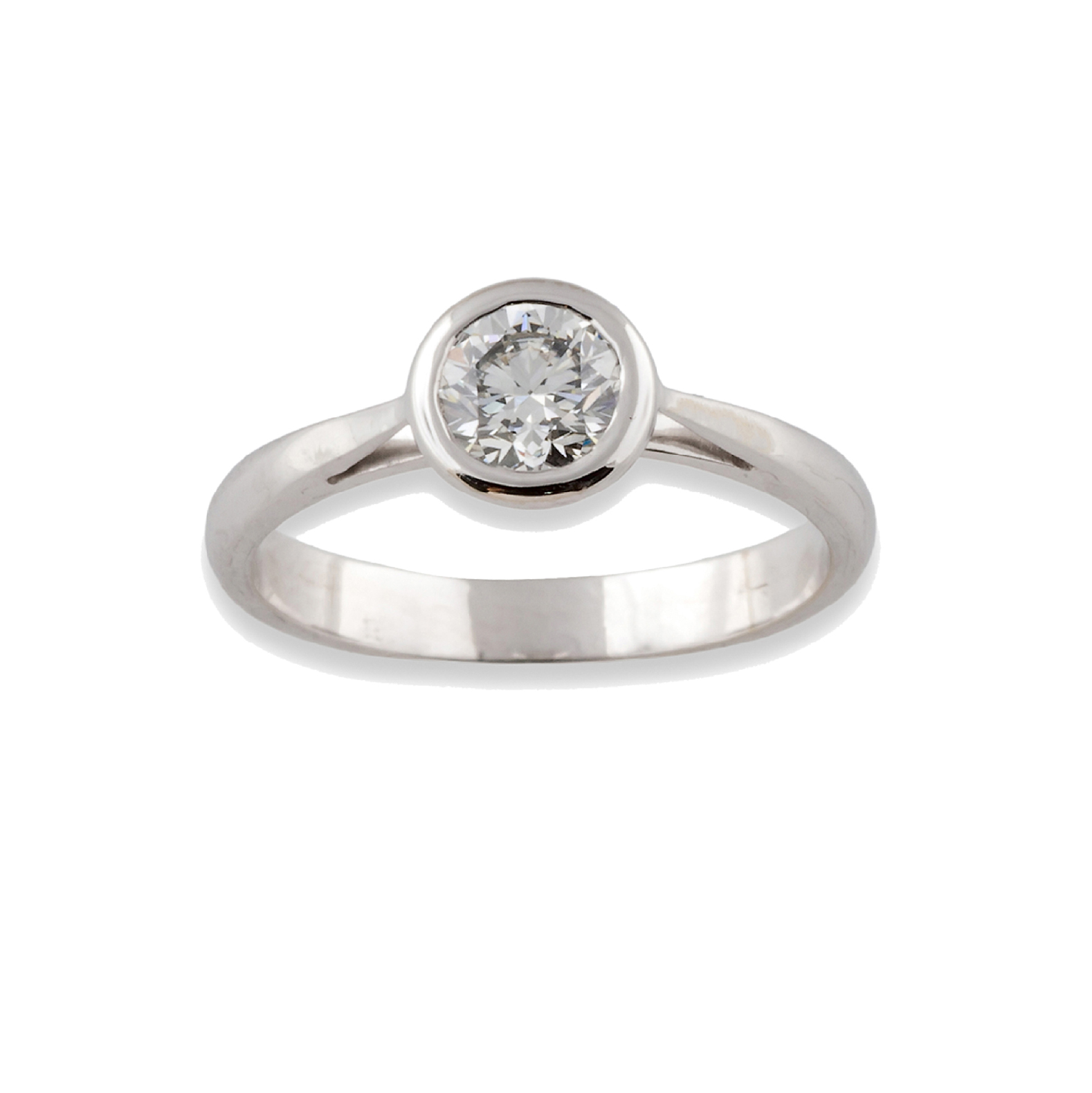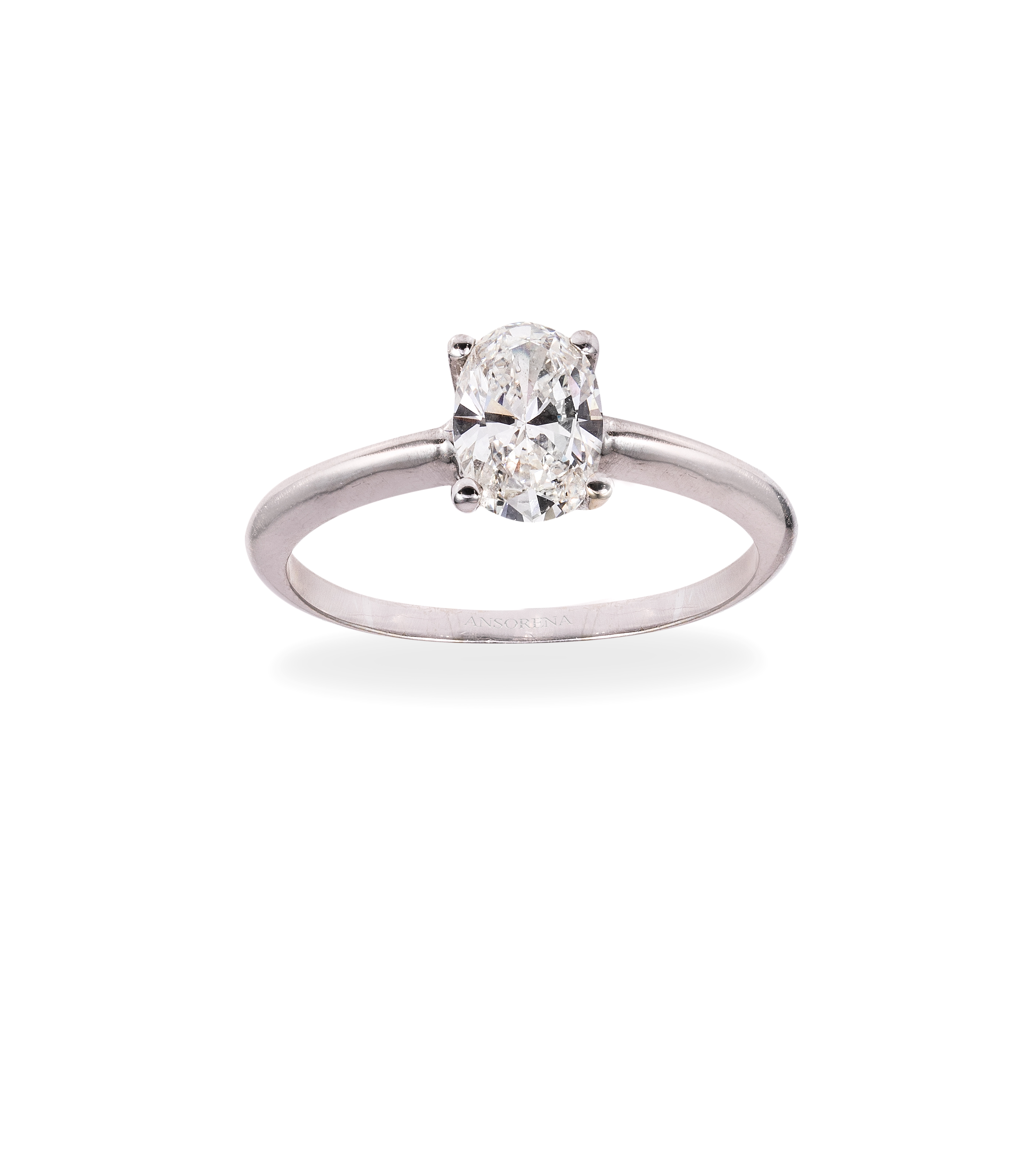 Solitario de oro blanco de 18 kt., diamante talla oval de 0.92 ct. engastado en cuatro garras