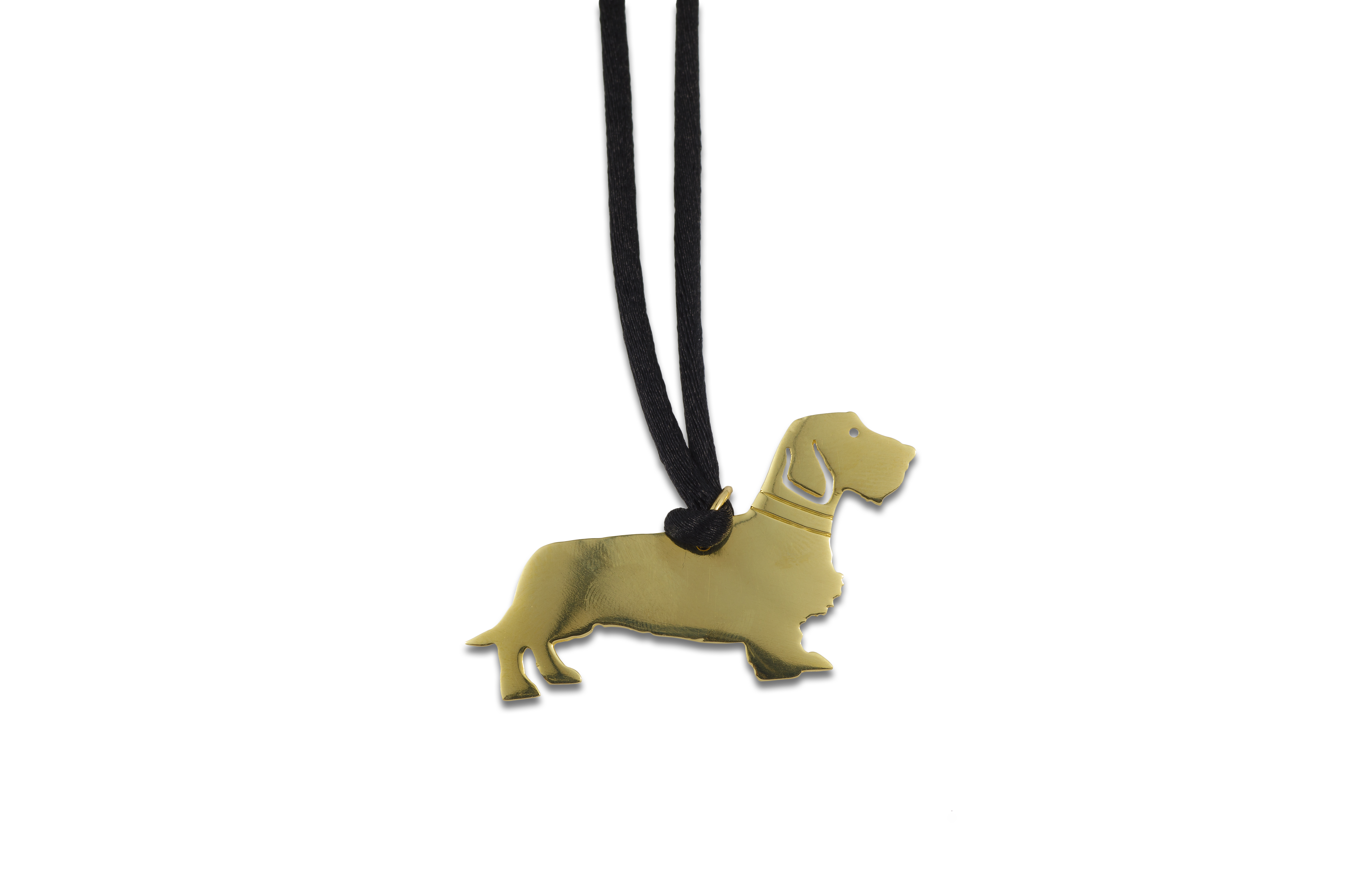 Colgante de la colección Teckel, de oro amarillo de 18 kt. con cordón de seda negra
