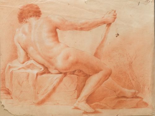 "Academia masculina con hombre sentado de espaldas"