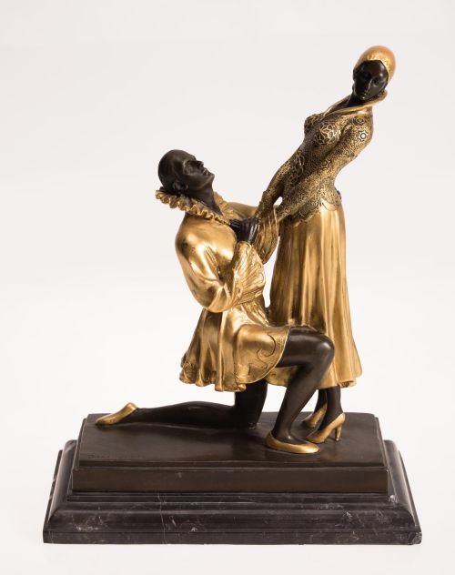 Escultura de bronce patinado y dorado a partir del modelo original de Dimitri Chiparus,, cuya firma figura en la base.