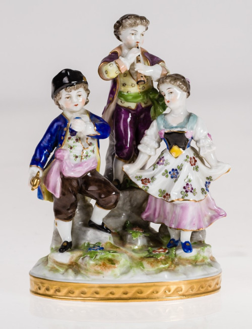 "Baile" grupo de porcelana esmaltada, posiblemente Alemania
