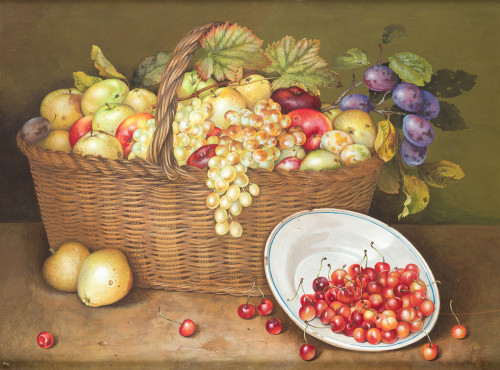 "Bodegón con cesto de frutas"