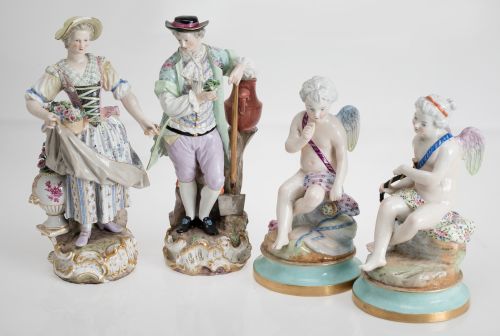 "Campesinos", pareja de figuras de porcelana, Meissen, S.XI