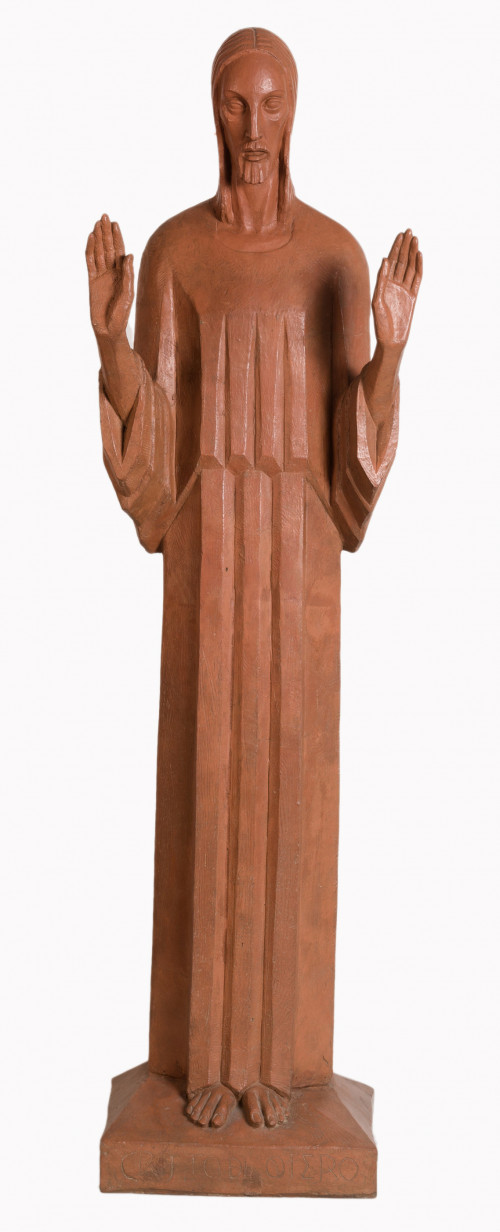 Boceto a escala reducida y realizado en terracota patinada del "Monumento al Sagrado Corazón de Jesús" de la ciudad de Palencia, conocido popularmente por su ubicación como "Cristo del Otero". La iconografía de la obra es la del Sagrado Corazón de Jesús, con la particularidad de tener las manos extendidas en actitud de bendecir a la ciudad que tiene a sus pies. En su estilo se aprecia la influencia del art decó y el cubismo, con una potente monumentalidad que recuerda las obras públicas de la Antigüedad. Esta monumentalidad y el gran tamaño de la escultura definitiva permiten su relación con otras icónicas estatuas colosales de temática cristológica como el "Cristo Redentor" de Río de Janeiro o el "Cristo de la Concordia" de Cochabamba.