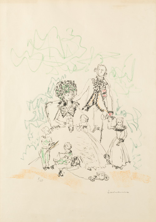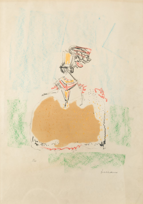 Pareja de litografías con intervención manual