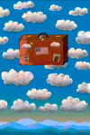 En esta obra digital Toral plasma en su maleta una bandera de Estados Unidos.