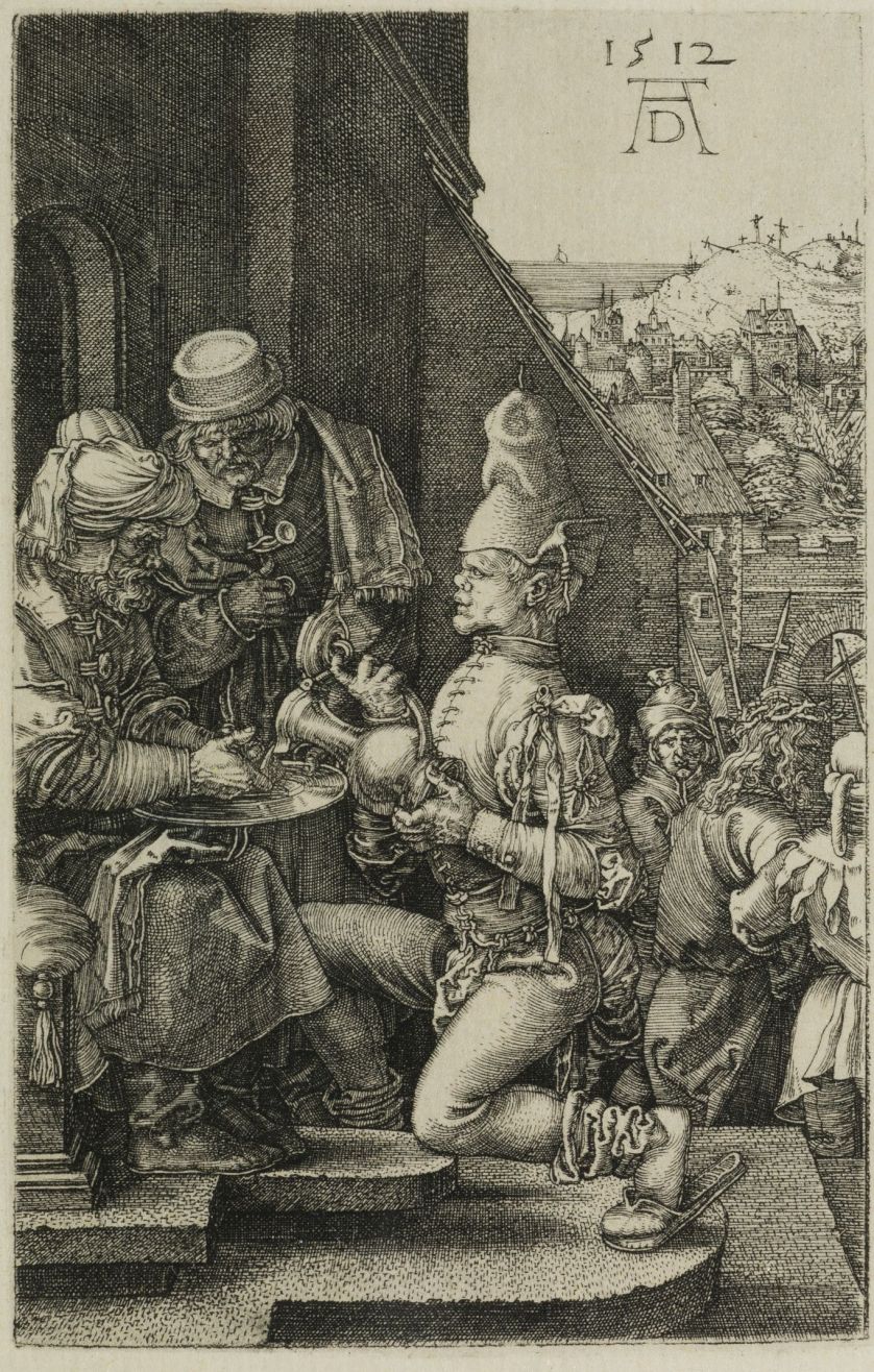 Firmado con monograma AD y fechado 1512 en plancha. Jesús, con manto y corona de espinas, es entregado por Pilatos. Al fondo Jerusalén y el monte Gólgota. De la serie "Kupferstichpassion: (nº 9)" . Edición de época posterior.
