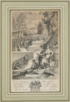 Tres grabados que ilustran escenas de las diosas romanas Flora, Ceres y Pomona.