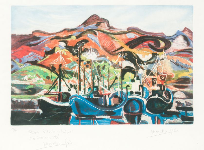 Firmado, dedicado y justificado 15/99 a lápiz en la parte inferior. Al dorso sello de la Galería Cervantes (Santander).