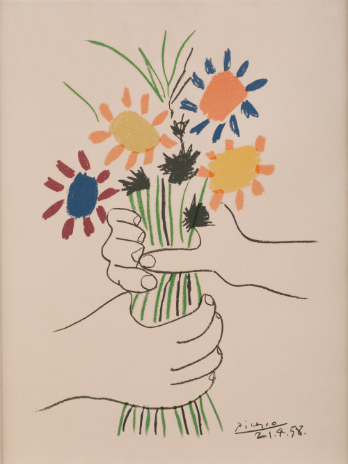 Firmada y fechada en plancha 21.4.58. Reproducida en : “145 dessins pour la presse et les organisations démocratiques de Picasso, editado en 1973 por el periódico L'humanité nº 43. “Picasso et la presse” un peintre dans l’histoire nº 258.