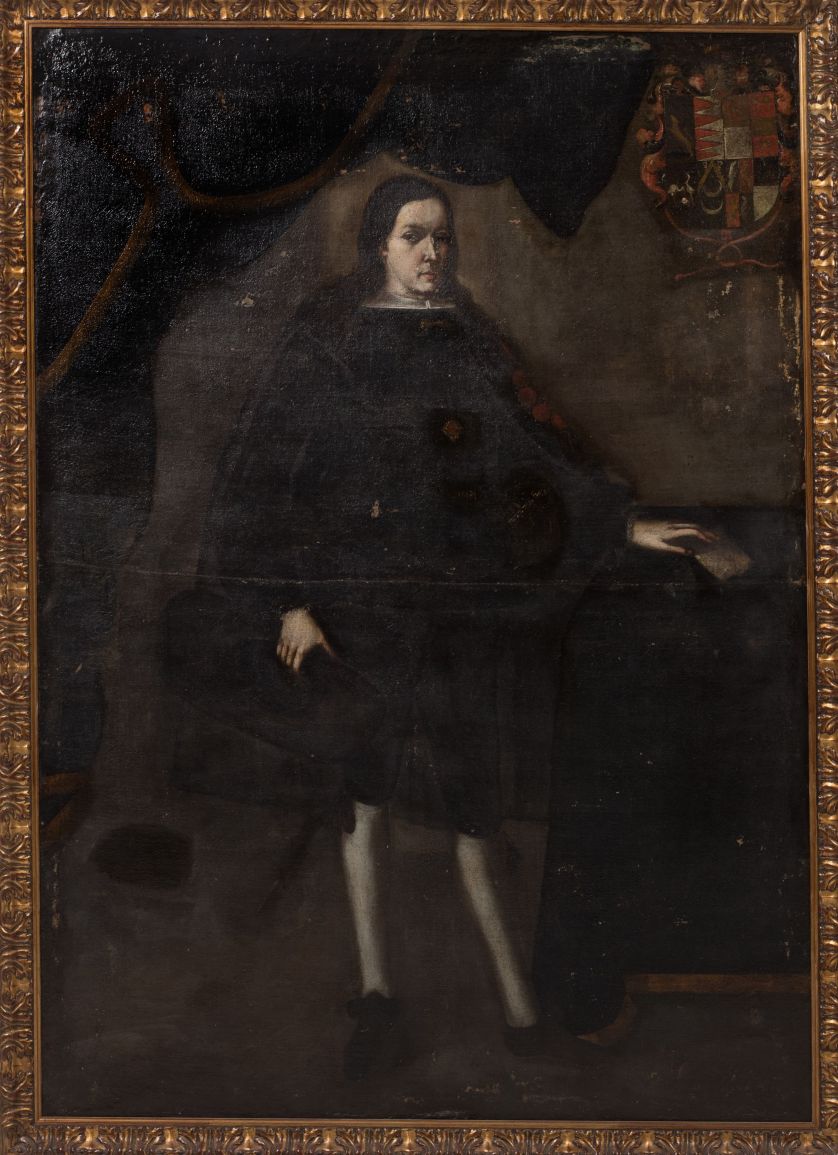 El retrato presenta una firma apócrifa de época posterior "Diego Velázquez". Por sus facciones podría tratarse de un retrato de don Juan Francisco de la Cerda, VIII Duque de Medinaceli.