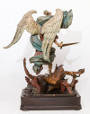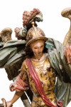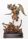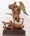 Este es el caso de esta magnífica talla policromada, de acentuado barroquismo y acusada teatralidad, que representa a san Miguel Arcángel según su iconografía tradicional: vestido como guerrero y armado con una espada venciendo a los ángeles rebeldes. El modelo y su excelente factura permite ponerla en relación con otros ejemplos conservados de la producción de Nicola Fumo en España como el de la Colección Güell, el del Convento de Sor María de Jesús de Ágreda en Soria o el del Monasterio de San Pelayo en Oviedo.