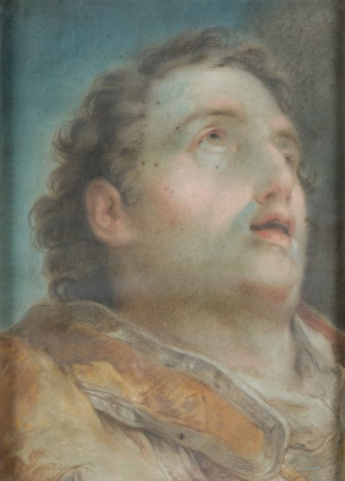 Este pastel, que representa la cabeza de san Vicente Mártir con la mirada alzada y vistiendo dalmática de diácono, fue concebido por el pintor para el lienzo de "San Vicente mártir ante Decio". Esta composición fue pintada por Vicente López para la Catedral de Valencia, hacia 1794-1796 y, aunque se destruyó en la Guerra Civil, se conservan dos bocetos preparatorios en el Museo Lázaro Galdiano y en el Meadows Museum de Texas