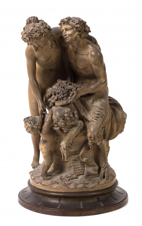 Escultura de terracota patinada según un modelo de Clodion, cuya firma figura en la parte trasera de la base.